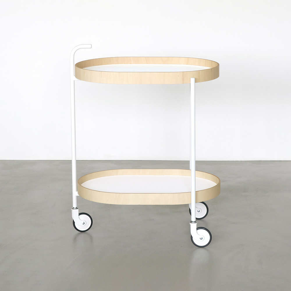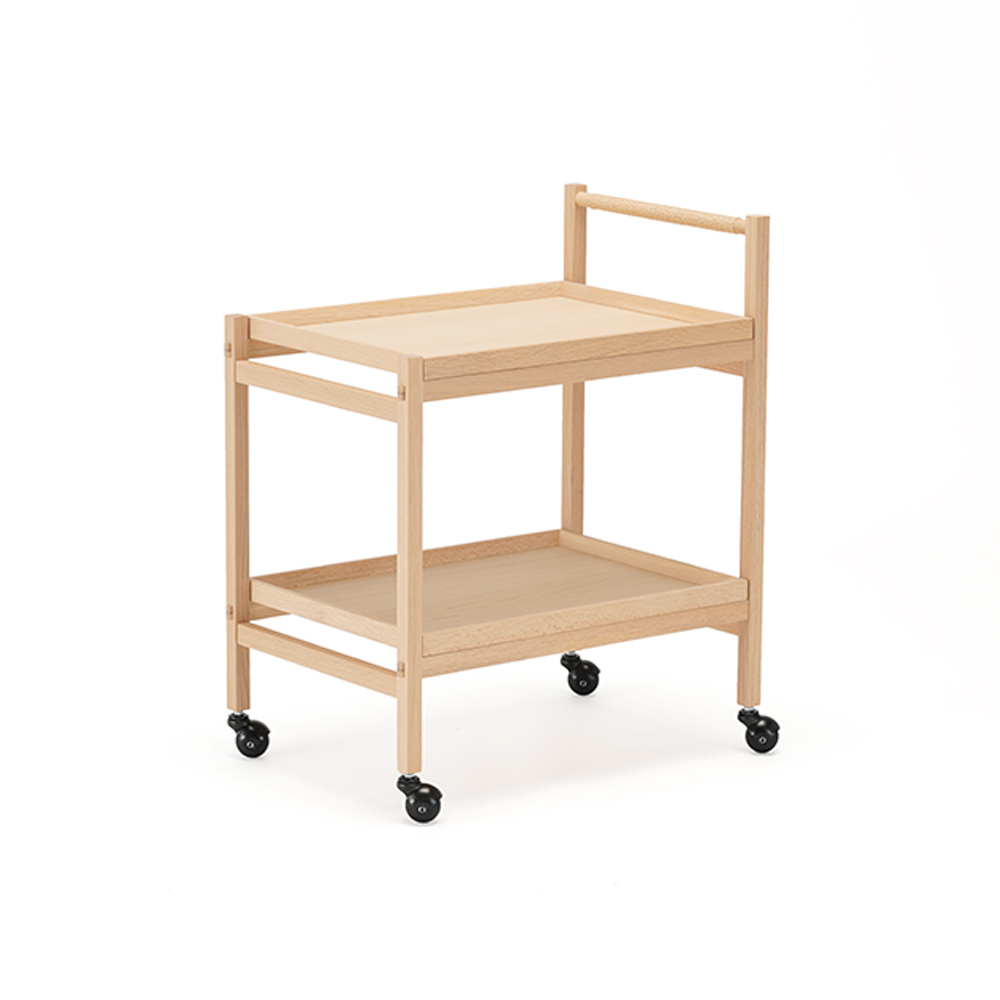 MOHEIM(モヘイム)の「TROLLEY」は、シンプルな佇まいながら優雅さを感じさせるワゴンです。上下のトレイは取り外し可能で、飲食や雑貨の持ち運びに便利。コンパクトサイズで日常の暮らしに溶け込みやすく、キッチンやダイニングをつなぐモビリティとして最適です。