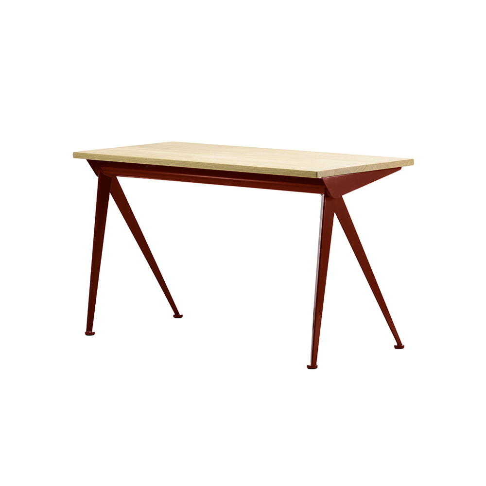 Vitra(ヴィトラ)の「Compas Direction」は、木とスチールの素材コントラストが美しいホームオフィスデスク。オイル仕上げのソリッドオーク天板に、コンパスの針を思わせるスチール脚が軽やかな印象を与えます。