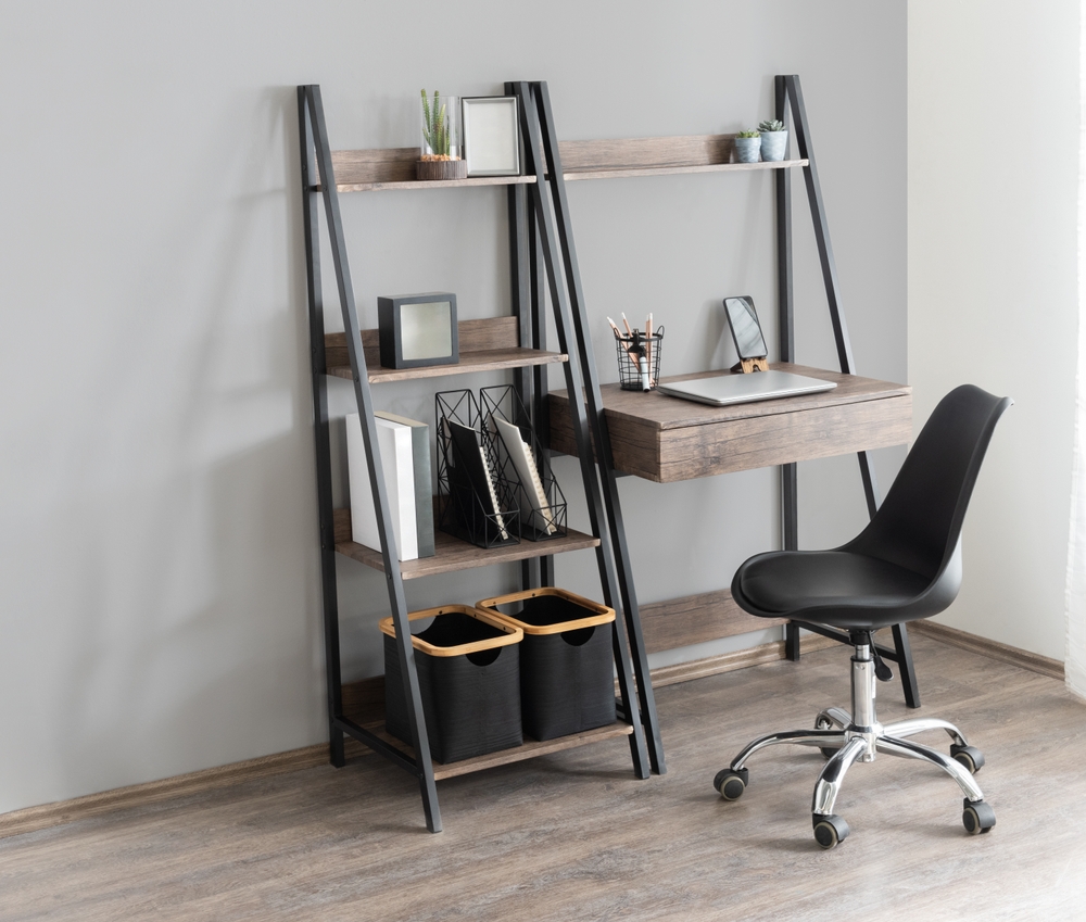 引き出しや棚付きのデスクは、必要なものをすぐ手に取れる距離に収納できる使い勝手の良さが魅力です。文具や仕事道具をすっきり整理できるため、デスク上のスペースを広く使え、集中しやすい環境が整います。