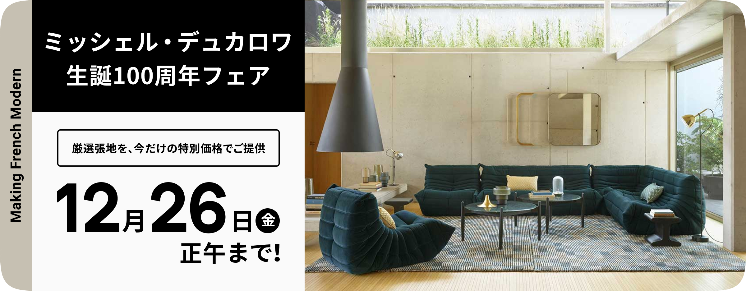 リーン・ロゼを代表する「ロゼトーゴソファ」や「ロゼブリガンタン」を手がけたデザイナー、 ミッシェル・デュカロワの生誕100周年を記念し、期間限定で特定の張地(Gランク RG-480~483)を特別価格にてご提供いたします。 キャンペーンは12/26(金)正午までとなります。 対象商品を見る SubsclifeRecommendedItems Pick up Repriced items : 01 ligne roset ROSETTOGO リーン・ロゼを代表するアイコン的存在として人気の高いソファ「ロゼトーゴ」。 オールウレタン構造で、密度の異なる4種類のウレタンを組み合わせることで、軽量ながら優れた耐久性を実現しています。 女性でも楽に持ち運べる手軽さも魅力のひとつ。 サイズは両肘・3P・2P・1P・ラウンジ・コーナー・パフの7タイプから選べ、張地は数種類の中からお好みや用途によってお選びいただけます。 PICK UP ITEM Pick up Repriced items : 02 ligne roset ROSET BRIGANTAN 帆船の帆が風を受ける姿をイメージして生まれた、ロングセラーのソファ。 7種類のウレタンフォームを組み合わせ、カバー内部には弾力性のあるポリエステル綿をキルト。 ふんわりと包み込まれるような座り心地で、リラクゼーションに最適です。 内側と背面の張地を変えられるコンビ張りのバリエーションも用意されており、お部屋の雰囲気や好みに合わせて幅広いコーディネートを楽しめます。 豊かな表情を持つソファとして長く愛され続けています。 PICK UP ITEM 商品一覧はこちら