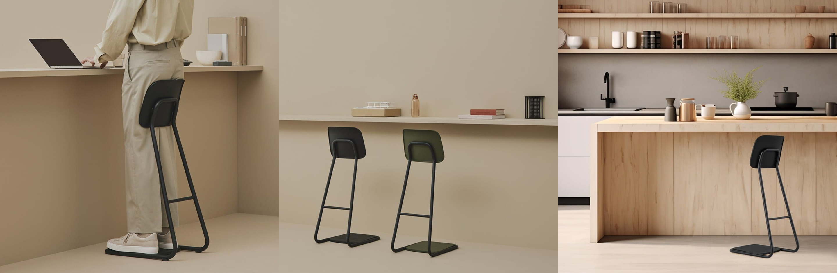自宅、オフィス、ショップなど立ち仕事のワークシーンの新しい定番として活用いただけます。