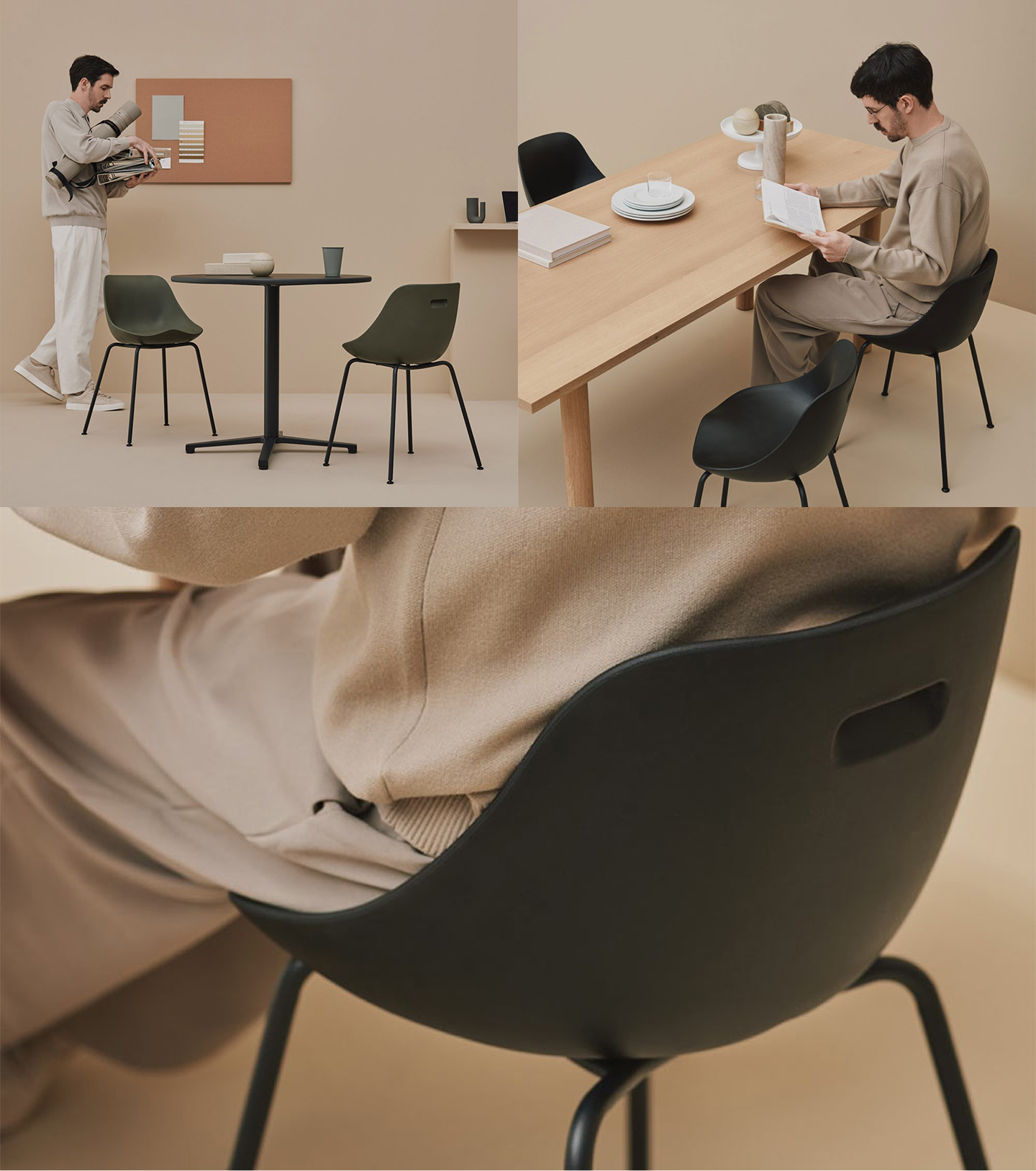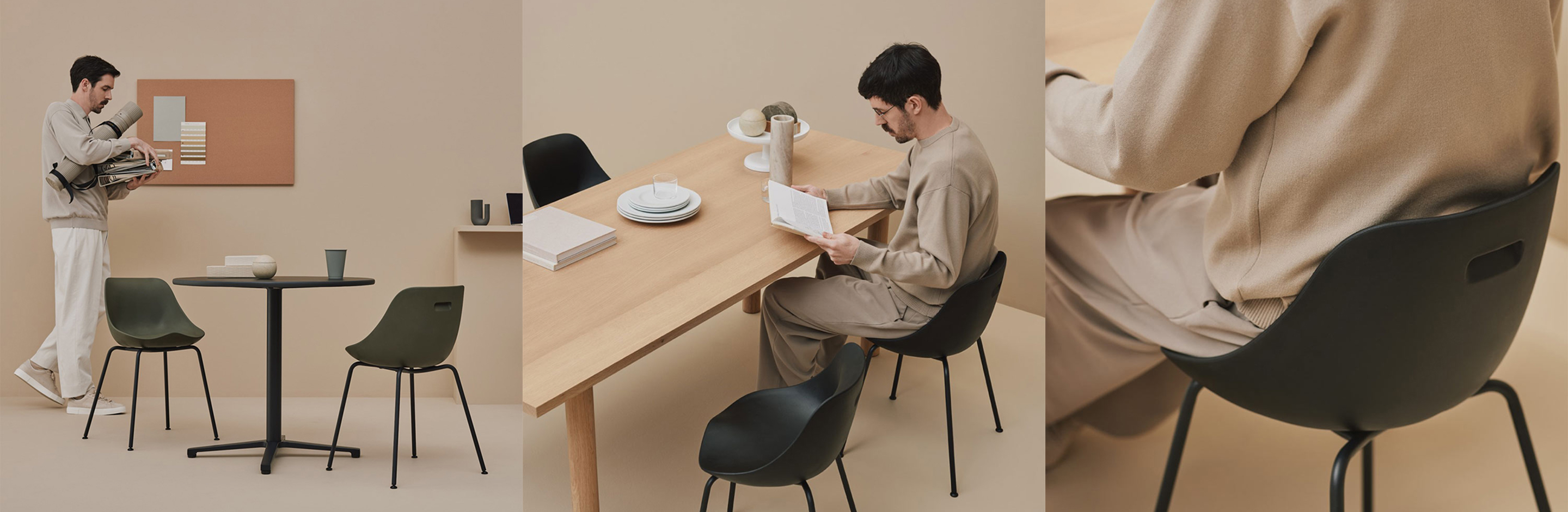 自立する安定感がありワークチェアとしておすすめ。デスクワークや会議室、リフレッシュルームなど、仕事中も休憩中にも使え、オフィスの様々なシーンで活躍します。