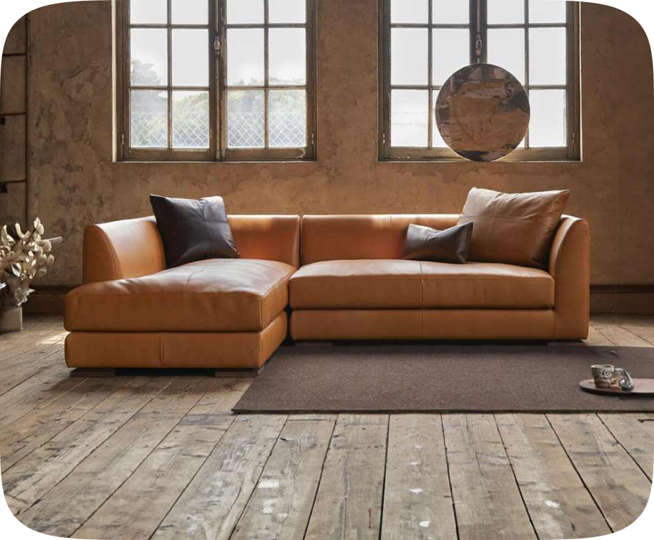 住まいで過ごす時間の意味が変化する中、日常のくつろぎはこれまで以上に重要なものとなっています。 ナチュラルマークをそのまま残したレザーは、一点ごとに異なる表情を持ち、使い重ねることで空間に穏やかに馴染んでいきます。 セミアニリン仕上げとウレタンコーティングにより、上質な風合いと扱いやすさを両立。 高密度ウレタンフォームと上質なダウンフェザーが、耐久性を備えながら包み込まれるような座り心地を支えます。 洗練されたフォルムが住空間と自然に調和し、落ち着きのある時間を静かに演出する存在です。