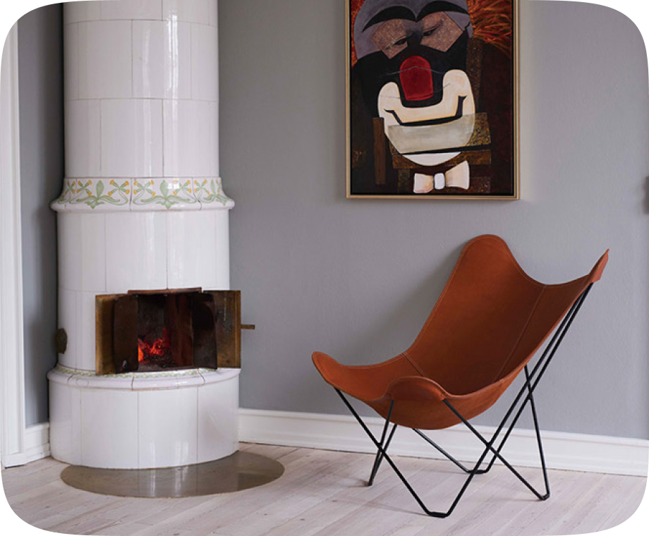 “バタフライチェア”の愛称で親しまれるBKFチェアは、1938年にアルゼンチン出身の3人のデザイナーによって生み出された名作チェアです。 しなやかなフレーム構造にレザーを掛け合わせた構成は、身体をやさしく受け止め、深く身を委ねられる座り心地を実現。 視線を程よく遮るフォルムにより、リビングや団欒の場でもパーソナルな時間を確保できます。 ゆったりとした座面はあぐらもかける余裕があり、本革ならではの経年変化とともに、使うほど身体に馴染む一脚です。