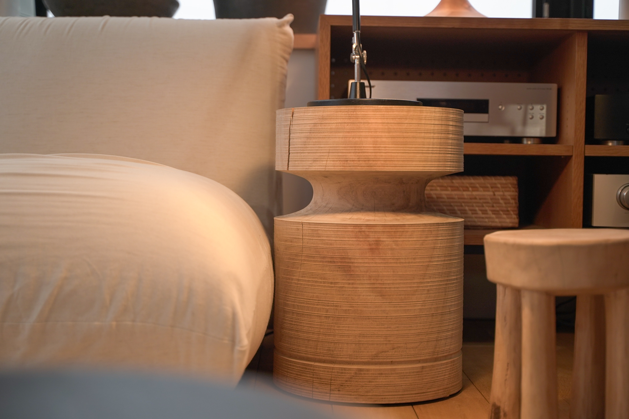 白を基調に、自然素材の質感が静かに重なる空間。