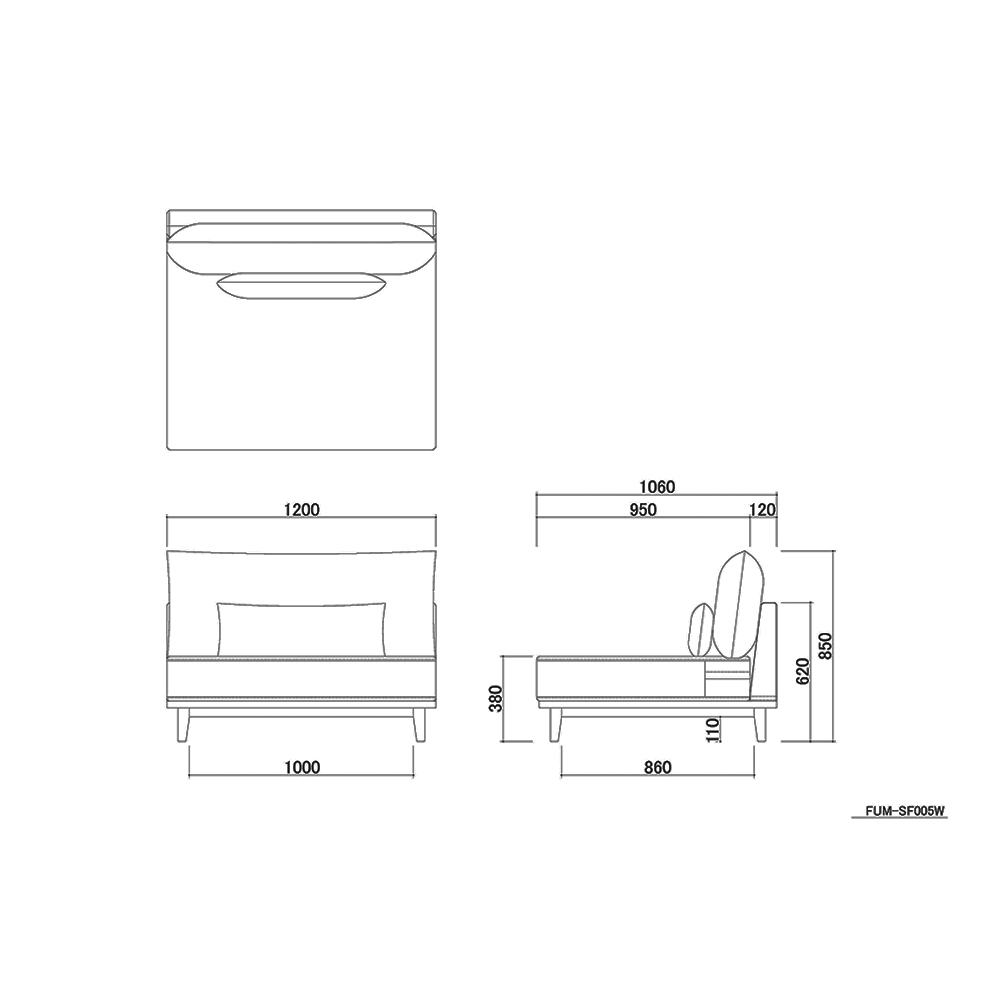 背クッション大:幅 1200 × 奥行 200 × 高さ 500 mm