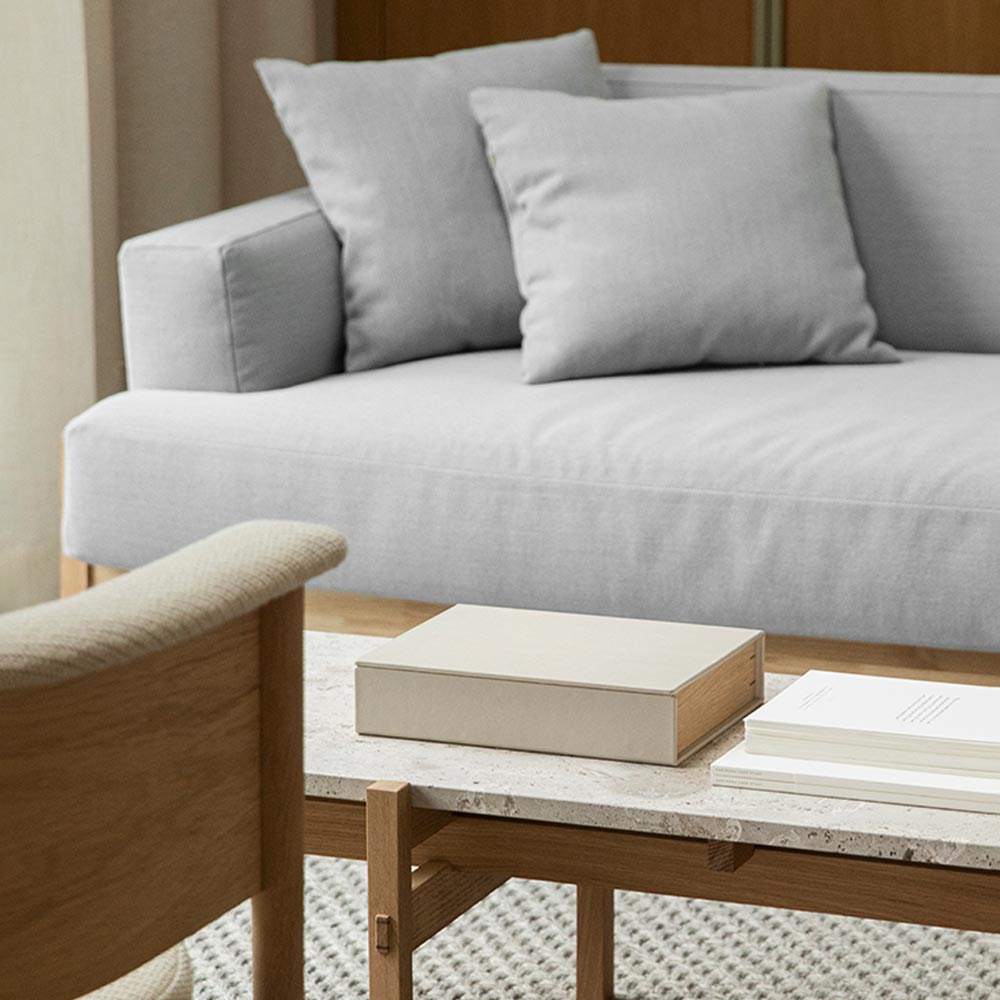 彫刻的な美しさとリラックスした雰囲気をソファに持たせました。