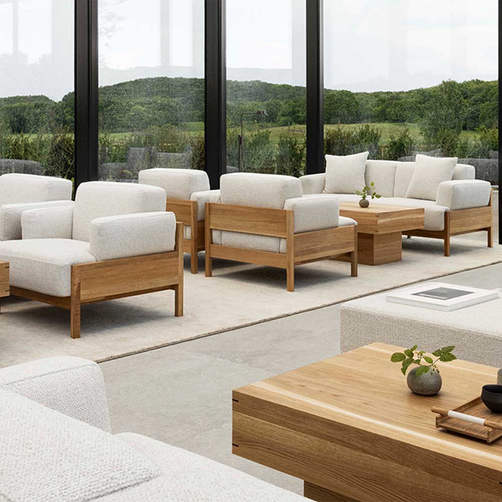 彫刻的な美しさとリラックスした雰囲気をソファに持たせました。