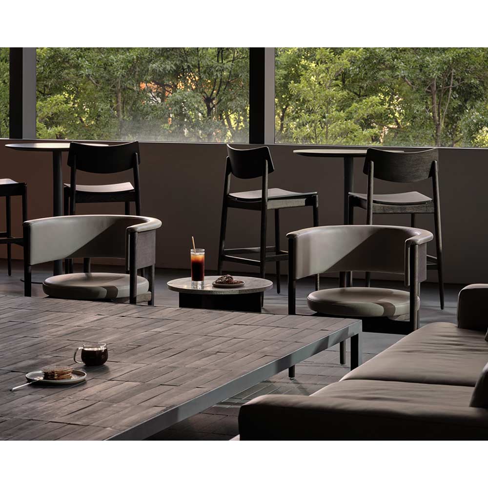 丸みを帯びた背もたれは、暖かく、おおらかな印象を加え、椅子に座ってもユーザーの動きを制限しません。
