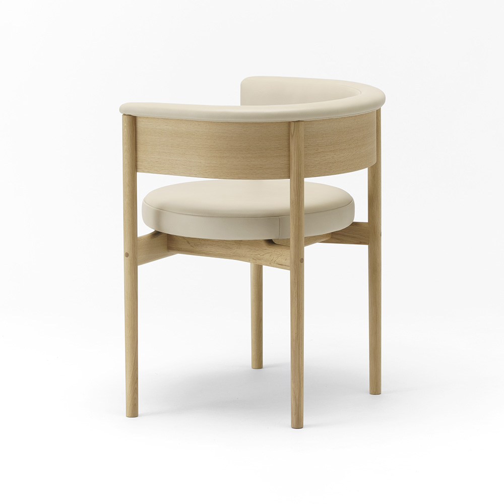 低めに設定された背面とコンパクトにまとまった脚部により、ダイニングチェアでもスツールでもない、それぞれの良さを兼ね揃えた機能性豊かなチェアに仕上がりました。