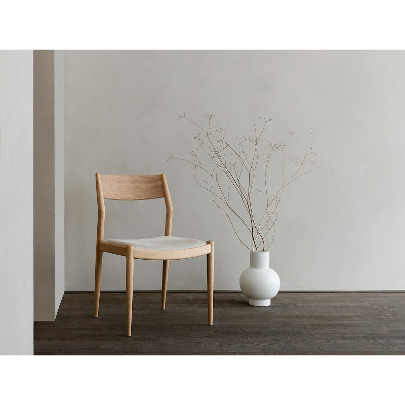 このダイニングチェアはカリモクの工場を視察し、職人と現場でワークショップを行った結果生まれたピースです。