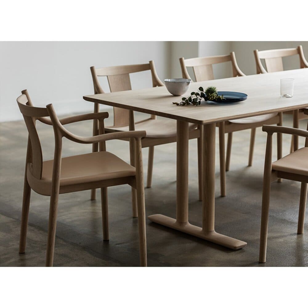 背板は飛騨の曲げ木技術を駆使した3次元の曲げ木構造を用い、座る人の背中を優しくサポートします。