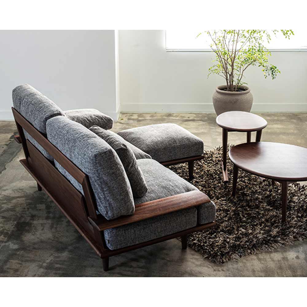 スツールは単独でスツールとして、またソファにつけて脚をのせ、カウチのようにもお使いいただけます。