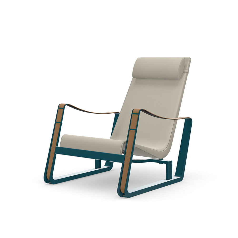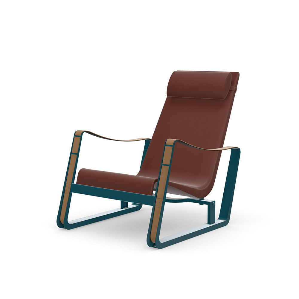 パウダーコーティングされたスチール製のフレームに革のベルトを渡してアームレストとした、ゆったりとして快適なアームチェアで、プルーヴェ自身も自宅のリビングで使用していました。