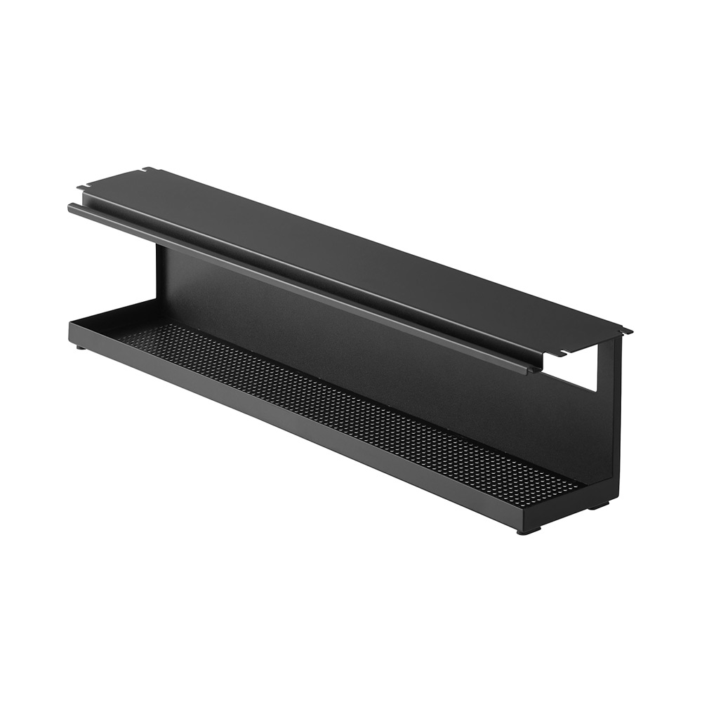 デスクの天板下に木ネジで取り付けて電源タップやACアダプター・HDDを収納。