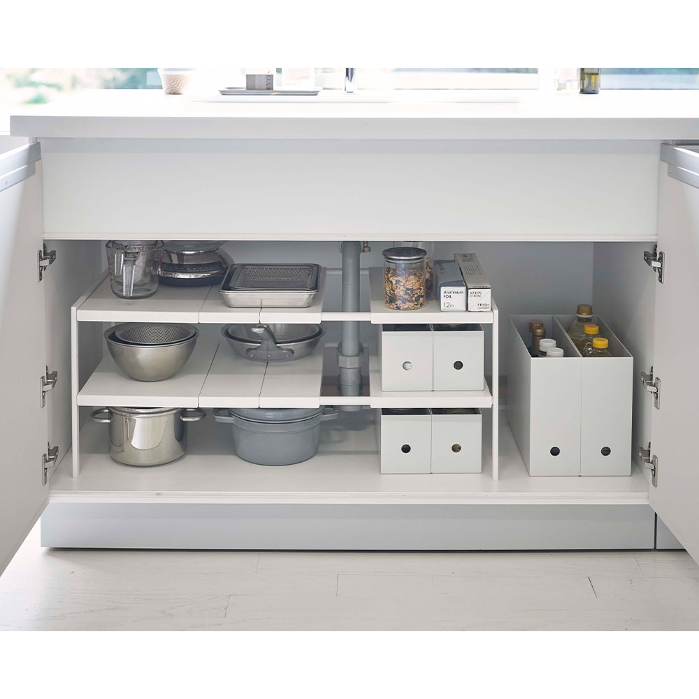 伸縮できるから設置場所の幅に合わせて調整できる丈夫なスチール製伸縮棚!