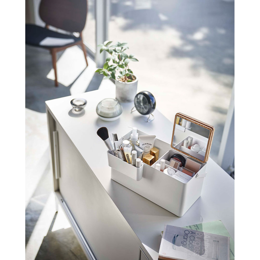 使い勝手のよいミラー蓋付きメイクボックス。